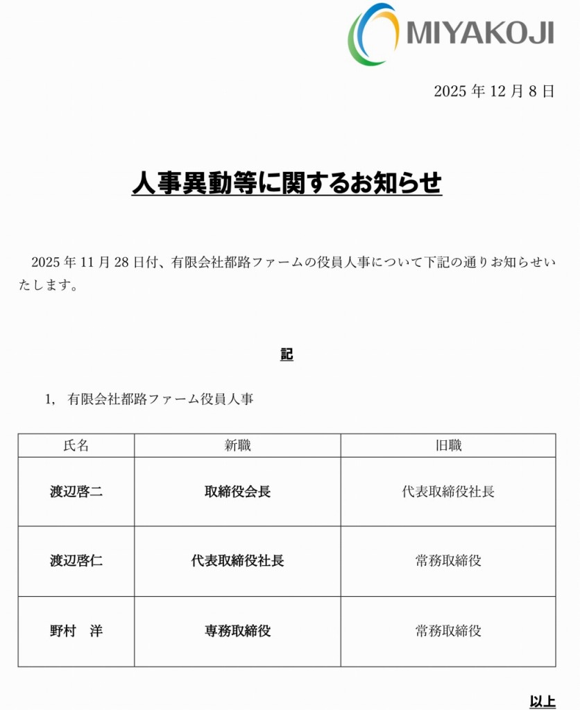 人事異動等に関するお知らせ